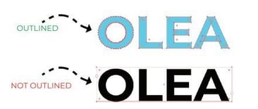 What does Olea mean when they say that text on custom wrap artwork needs to be "outlined" (see screenshot below from their documentation)?
